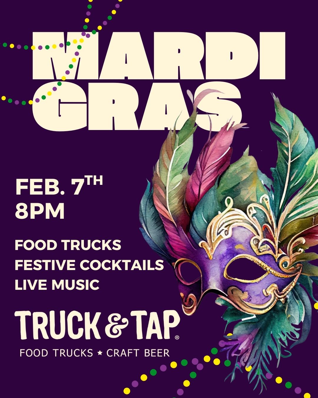 Feb 7 8:00 pm - 11:30 pm Mardi Gras Party Truck & Tap (Duluth) 3137 Main Street, Duluth Event Details Get Directions