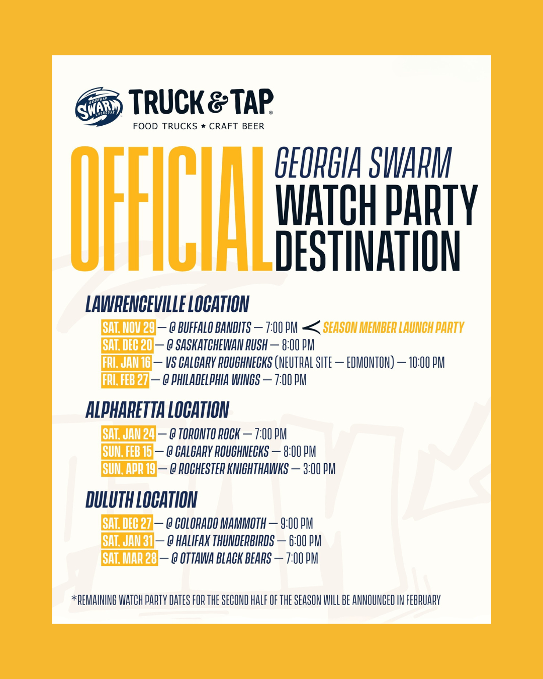 Truck & Tap LawrencevilleOfficial watch destination for the Georgia Swarm LAX team!